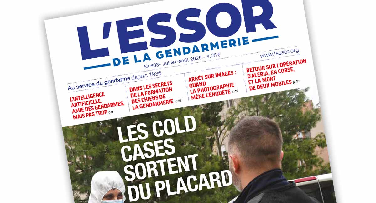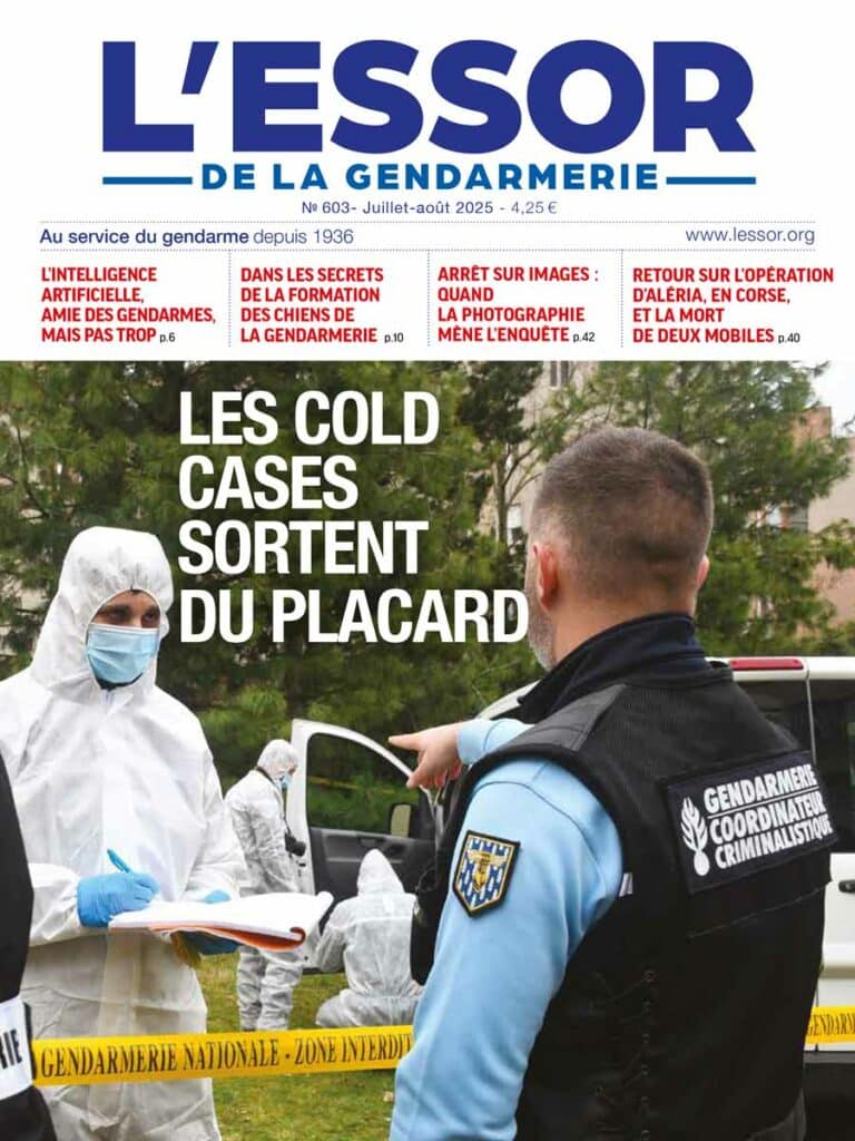 Une du numéro 603 du magazine L’Essor de la Gendarmerie, paru en juillet/août 2025.