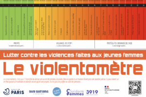 Présenté sous forme de règle graduée, le violentomètre rappelle ce qui relève ou non des violences à travers une graduation colorée par 23 exemples de comportements types qu’un partenaire ou interlocuteur professionnel peut avoir.