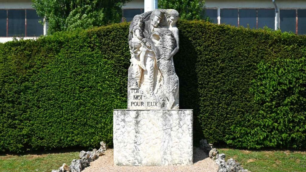 Une sculpture portant la devise du CNICG (« Toi et moi pour eux » est installée sur la place d’arme de la caserne Godefroid-Gamin de Gramat. (Photo: L.Picard / L’Essor)