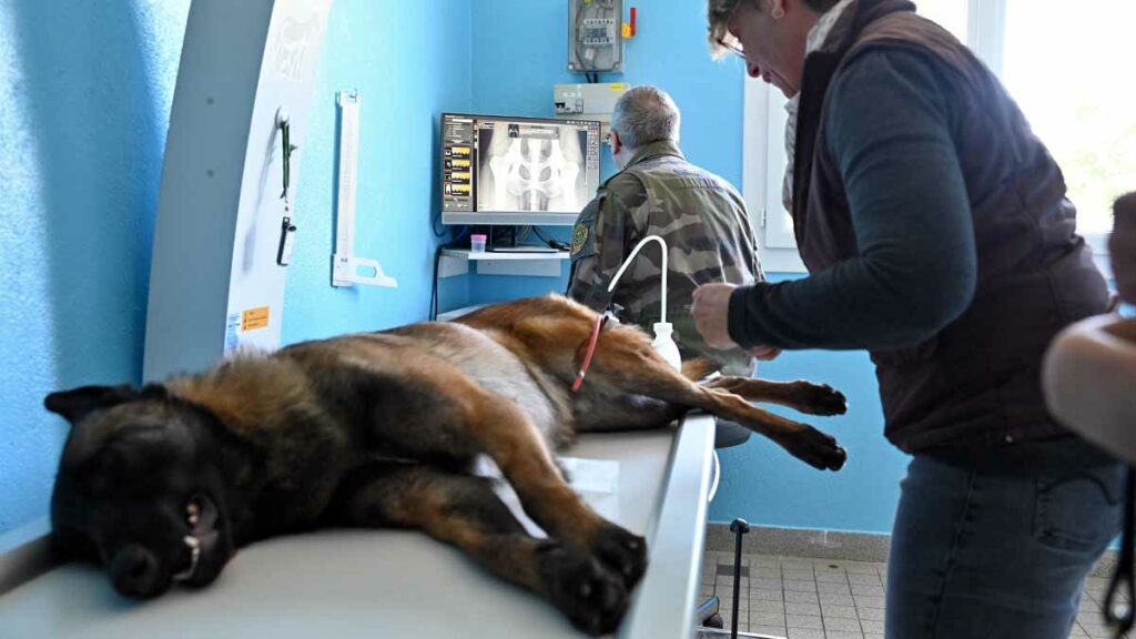La présence sur site du 26e groupe vétérinaire du Service de santé des armées est aussi un atout non négligeable. Une véritable clinique vétérinaire est ainsi dédiée au Centre. Et entre le soutien sanitaire des animaux présents sur site et les différentes visites médicales, elle ne manque pas d’activité. Ce sont notamment les vétérinaires qui, à partir d’un examen très complet, émettent un avis favorable ou non à l’achat des chiens. La sélection est drastique, par exemple en ce qui concerne le syndrome de dysplasie des hanches qui touche de nombreux chiens de grande taille.