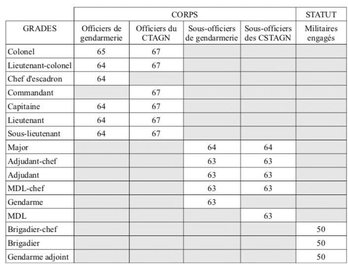 Limites d’âge des réservistes de la Gendarmerie