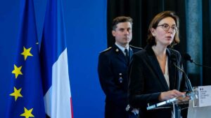 La ministre des Comptes publics, Amélie de Montchalin, lors de la conférence de presse de présentation des résultats de la Douane pour l’année 2024. (Photo: Douane)