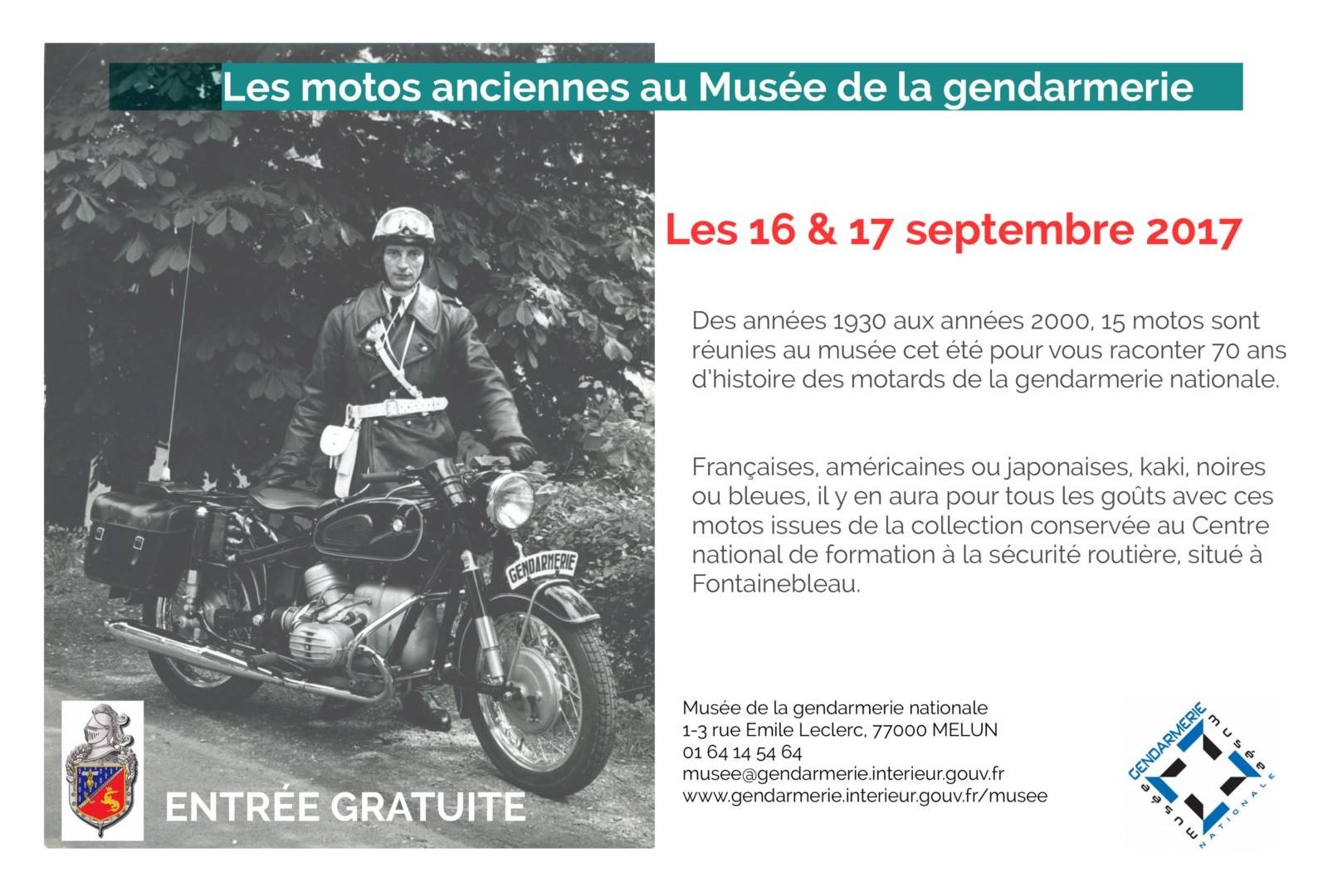 Parmi les modèles exposés, ratier, Harley-Davidson, Cemec et bien d’autres anciennes côtoient les légendaires BMW des années 60 et les Yamaha plus récentes. Des prototypes développés par les motards de la gendarmerie, inédits aux yeux du grand public trouvent également leur place dans cette exposition. Samedi 16 et dimanche 17 septembre, de 10 à 18h. Entrée gratuite.