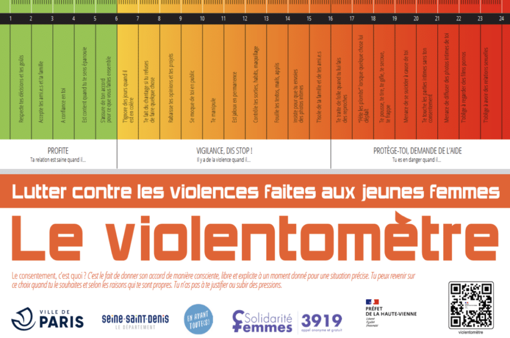 Le violentomètre est un outil permettant de « mesurer » si une relation amoureuse, professionnelle ou universitaire est basée sur le consentement et ne comporte pas de violences. Les 23 questions qu’il pose vous permettront de déterminer si votre relation est saine ou si au contraire elle est violente.